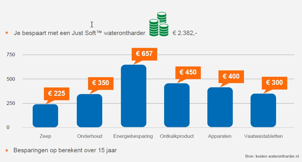 Dit leidt tot hogere energiekosten en een kortere levensduur van de apparaten. Met een waterontharder voorkomt u deze problemen en zorgt u ervoor dat uw apparaten langer meegaan. Dit bespaart u niet alleen geld, maar ook tijd en moeite die u anders zou besteden aan onderhoud en reparaties.