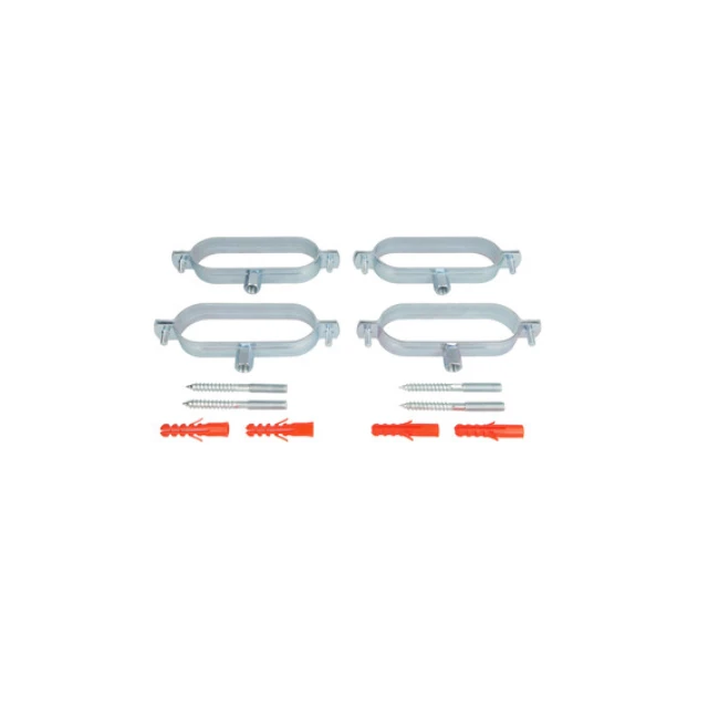 De ovale beugelset omvat alle benodigde onderdelen voor het monteren van een RVS ribbelbuis.