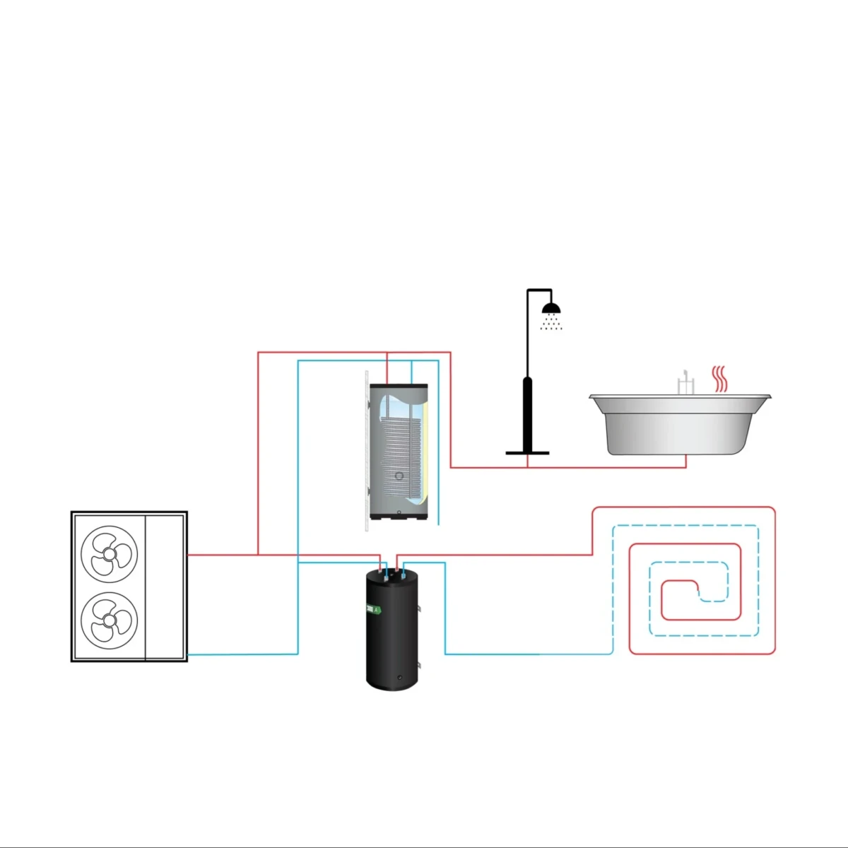 • Warmtewisselaar: Wave roestvrij staal (RVS), 15 meter lang, Ø 28 mm