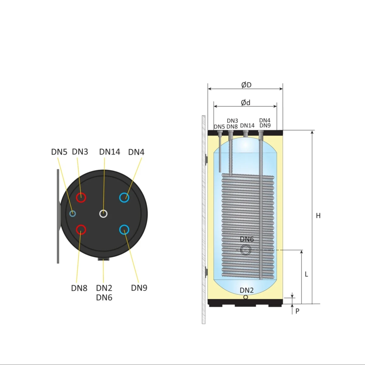 • Binnentank: Ø 470 mm, 1,0 mm Duplex 2205 RVS