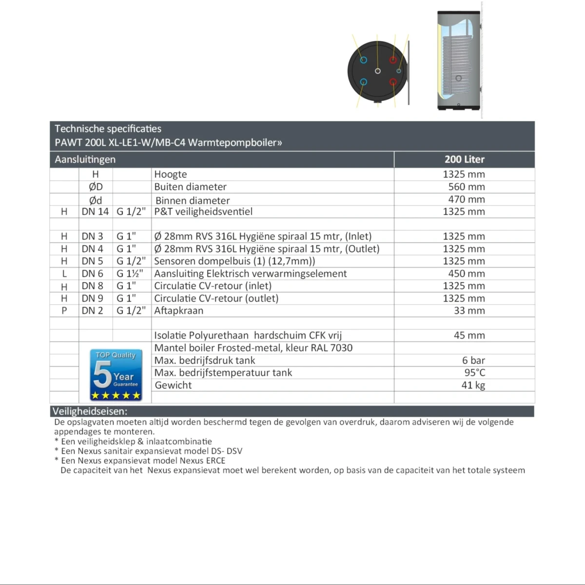 PAWT-200 XL-LE1 – 200 Liter boiler met XL RVS Warmtewisselaar