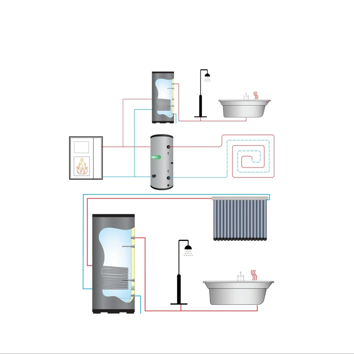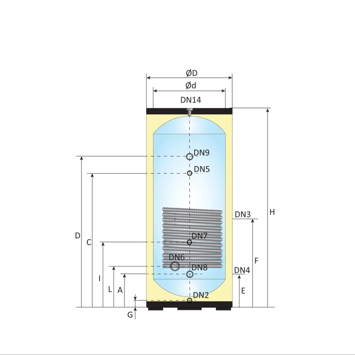 - Buitenmantel: Ø 700 mm, gegalvaniseerd frosted staal