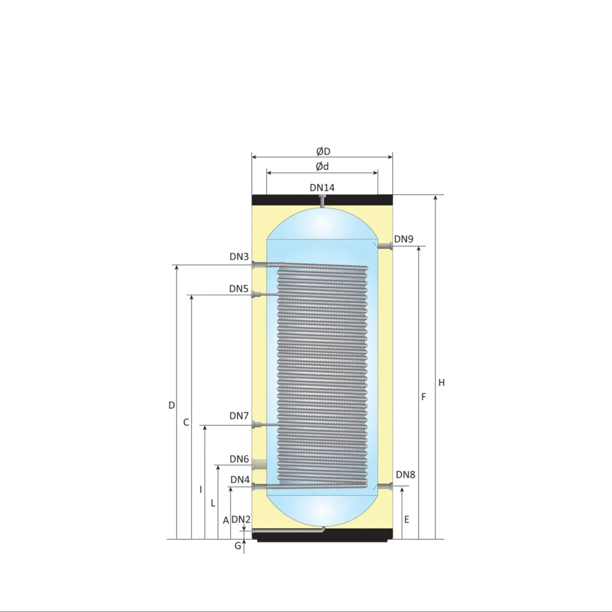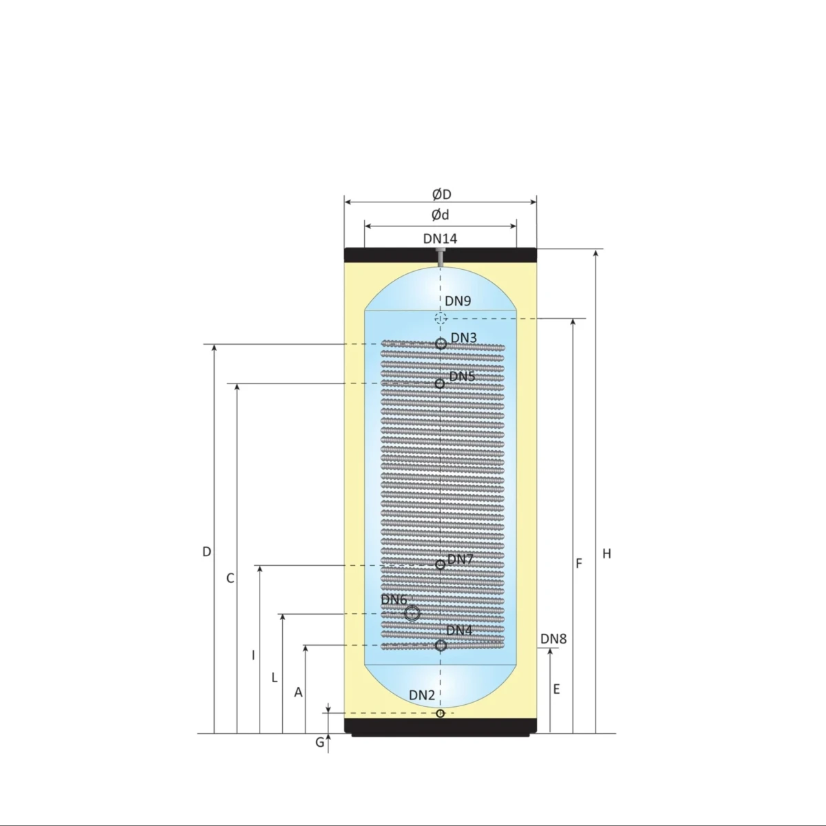 - Binnentank: Ø 600 mm, 1,5 mm Duplex 2205 RVS