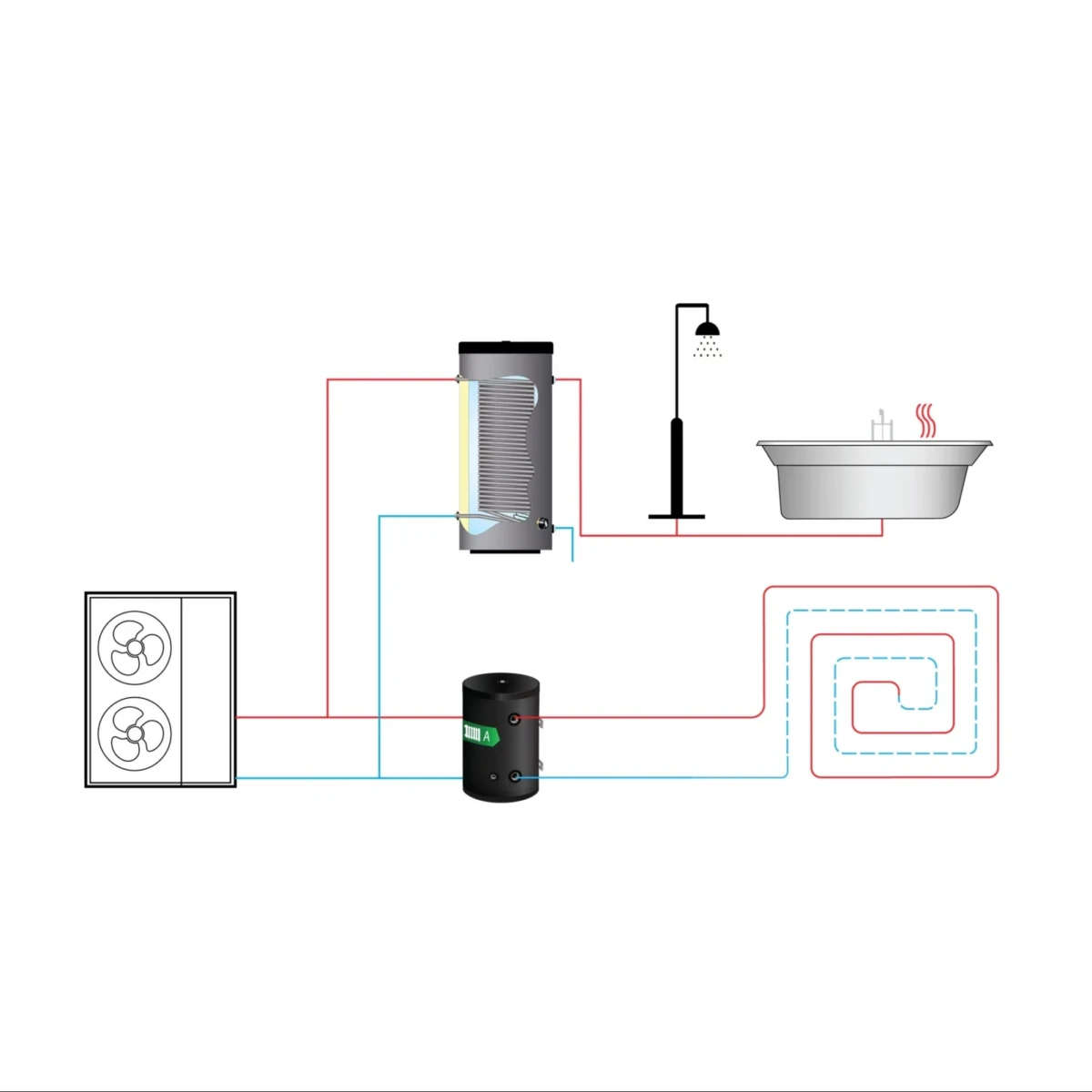 B-Series BT-50 – 50 Liter Buffertank met 4 Zijaansluitingen (licht zwart, staand & wandmodel)