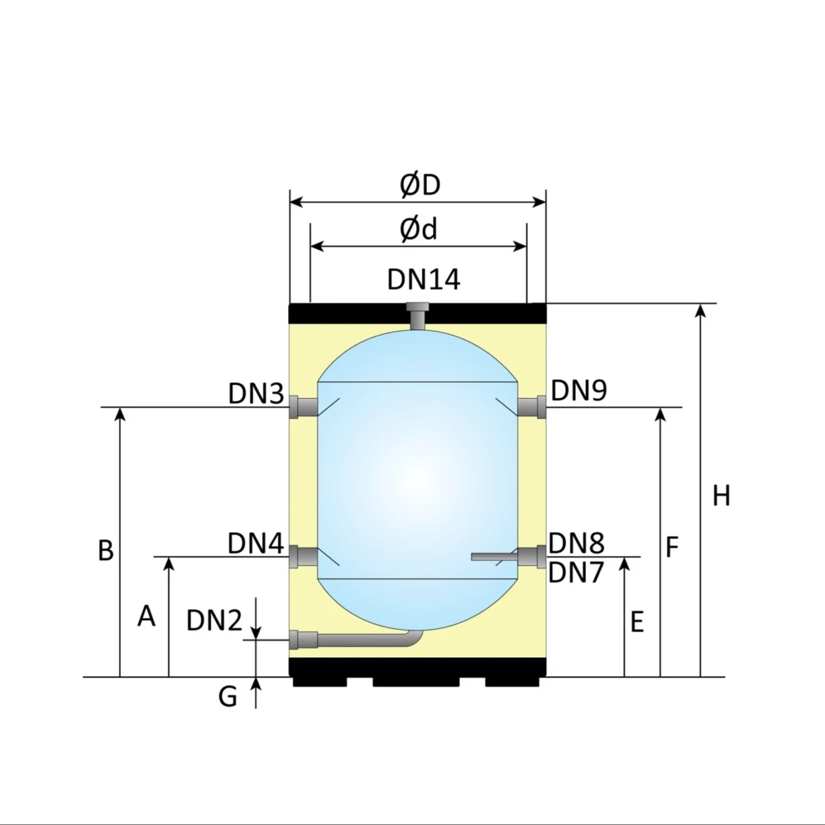 De B-Series BT-50 is een 50 liter buffertank met vier zijaansluitingen, geschikt voor zowel staande als wandmontage. Deze uitvoering in licht zwart plaatstaal combineert een moderne uitstraling met de duurzaamheid van een RVS SUS304 binnentank en efficiënte isolatie.