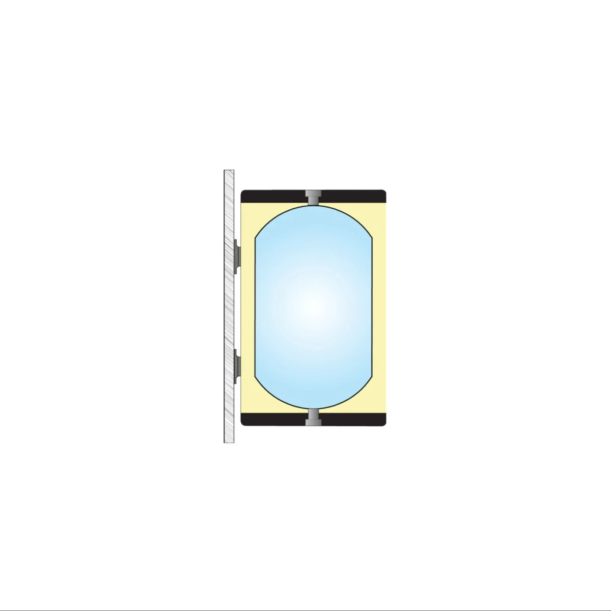 - Buitenmantel: Ø 380 mm, grijs plaatstaal