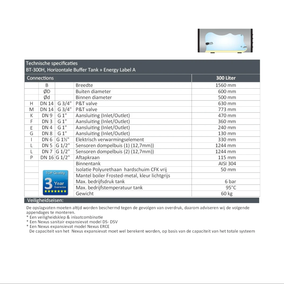BT-300H – 300 Liter Horizontale Buffertank