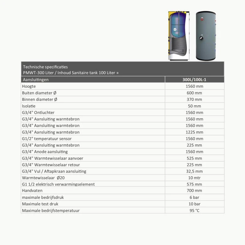 PMWT-400 liter combiboiler (Tank in Tank) met hoogrendement warmtewisselaar.