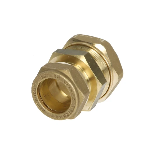 Fitting voor het verbinden van RVS-ribbelbuizen met koperen leidingen. De fitting wordt geleverd met een reduceerbus, zodat deze geschikt is voor buizen van 22 mm en 18 mm. De ribbelbuis wordt eenvoudig in de metalen afdichtingsfitting gestoken en vastgeschroefd. Het enige benodigde gereedschap is een buissnijder en een moersleutel.